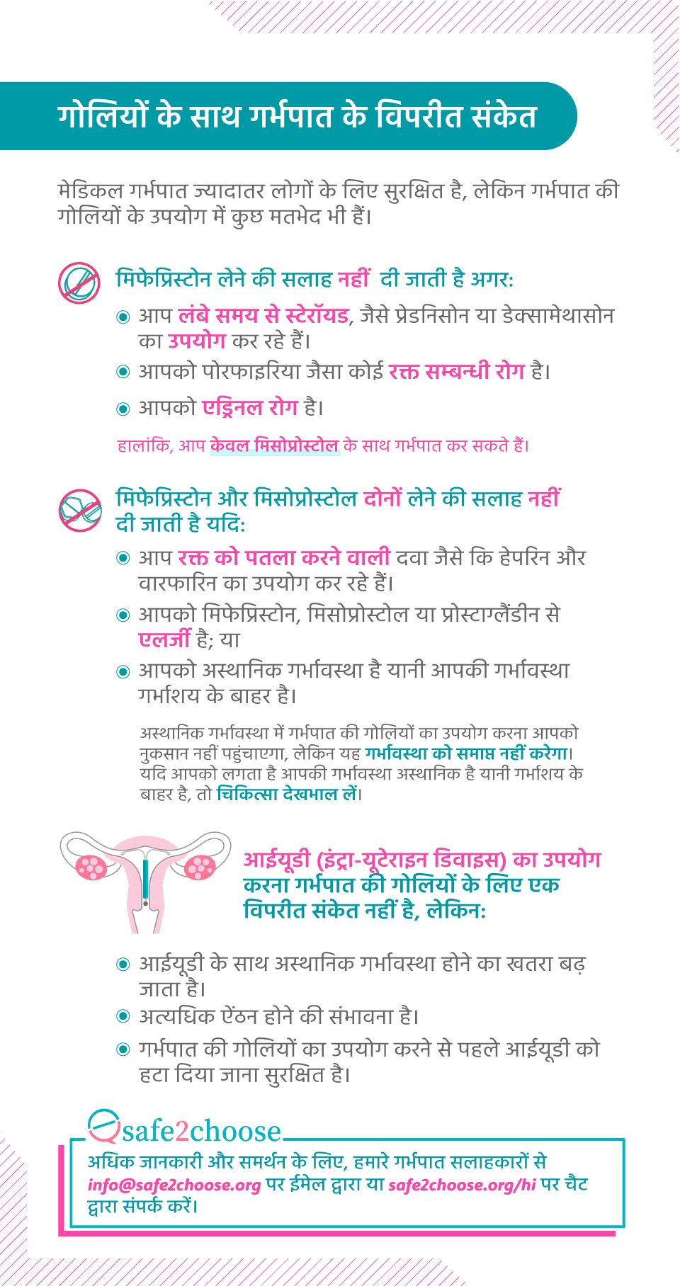 हमारे गर्भपात देखभाल से जुड़े संसाधन सरल, बहुभाषी और डाउनलोड करने योग्य बनाए गए हैं। इसे उन लोगों के साथ साझा करने में संकोच न करें जिन्हें इसकी आवश्यकता हो सकती है। यदि आप अधिक जानकारी चाहते हैं या आपके पास कुछ सुझाव हैं, तो हमारी सलाहकार टीम से संपर्क करें।