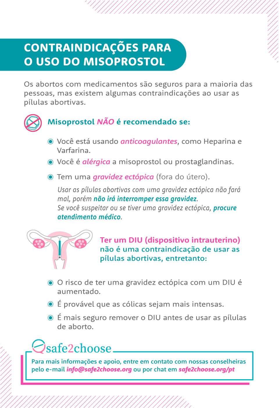 Nossos materiais sobre atenção ao aborto foram projetados para serem simples, multilíngües e para download. Não hesite em compartilhar isso com pessoas que possam precisar. Se você quiser mais informações ou tiver sugestões, entre em contato com nossa equipe de aconselhamento.