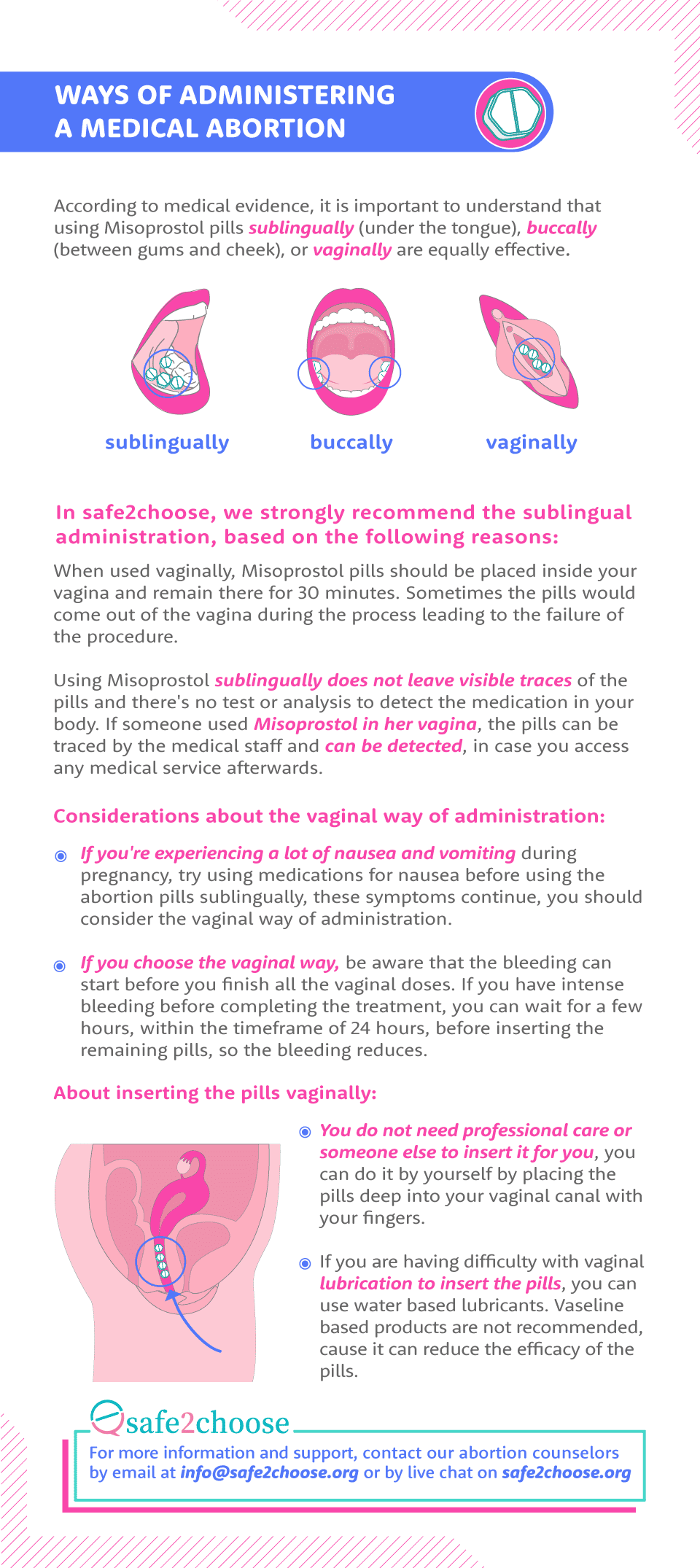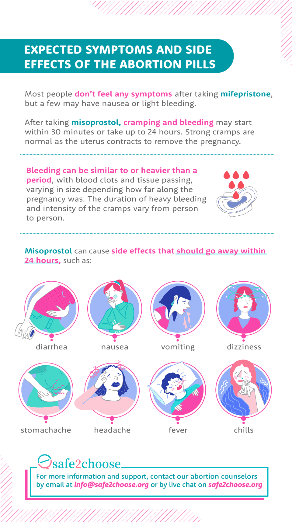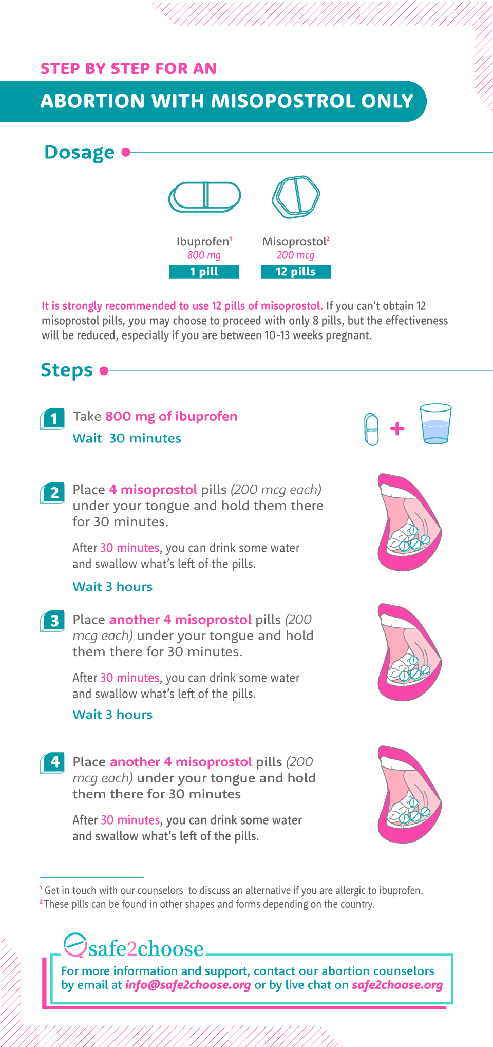 Lahat ng kailangan mo para sa ligtas na pagpapalaglag: malinaw na mga hakbang-hakbang na gabay, mga babalang senyales na dapat bantayan, mga biswal na instruksyon sa paggamit ng misoprostol, at higit pa. I-download ang mga madaling gamitin na PDF na ito at itago ito para sayo, kahit offline ka. Ang iyong kaligtasan, nasa iyong mga kamay.